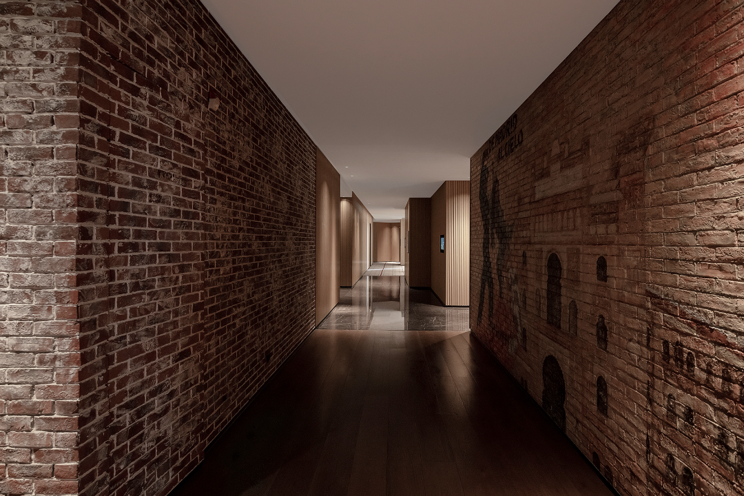 深業上城文華東方酒店配有一系列專屬會議場地和活動空間,77F的會議廳就是其中的典型代表。會議廳外側走廊采用毛坯磚式設計,其上繪有一幅特色壁畫;廳內則以棕褐色為主色調,融合風格前衛的落地玻璃窗設計,鋪設灰底多色條紋地毯,呈現出傳統又不失前衛的典雅氣韻,為品味獨到的策劃者提供理想的會議空間。
