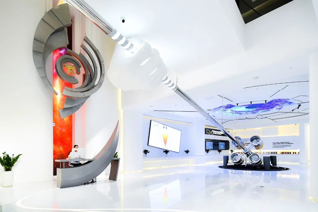 進入展廳,一道紅光閃爍-鳳翅和鳴映入你的眼簾 ,造型靈感來源于鳳凰羽毛跟鳳凰之眼,向右順勢看去,一只強有力的拳頭(凱撒大帝之手)從天花伸出,延生過去就是神六之光,3個概念裝置,全部用鋁材制作,造型復雜,既要保證效果也要考慮安裝跟連接的牢固性,技術及安裝難度很大。項目部在施工現(xiàn)場一次又一次地嘗試,不斷調整,確保不出絲毫偏差。