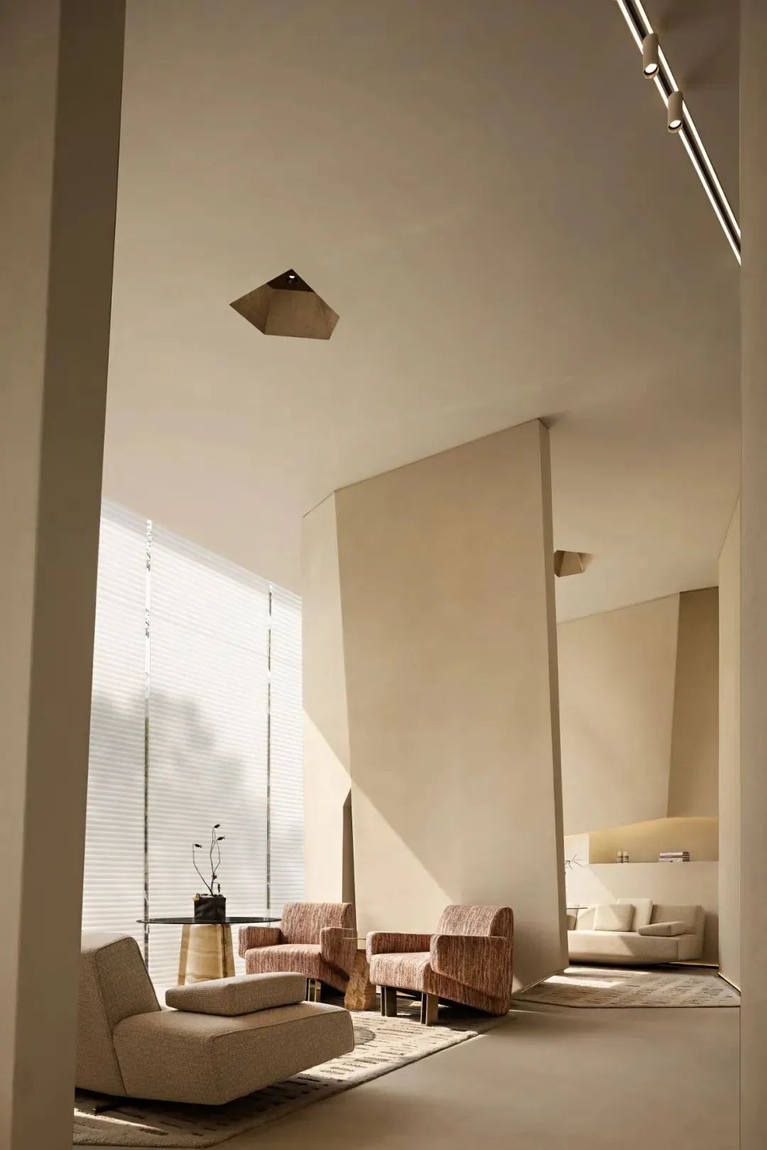 自然中有天光、火光與波光粼粼,但并不存在人工光;前者不是單一的,是在變幻的,伴隨時間維度的加入,都將成為打造空間的元素;這是區分他們的關鍵因素,所以設計師將人工光源隱藏起來,并命名為藏光行為。