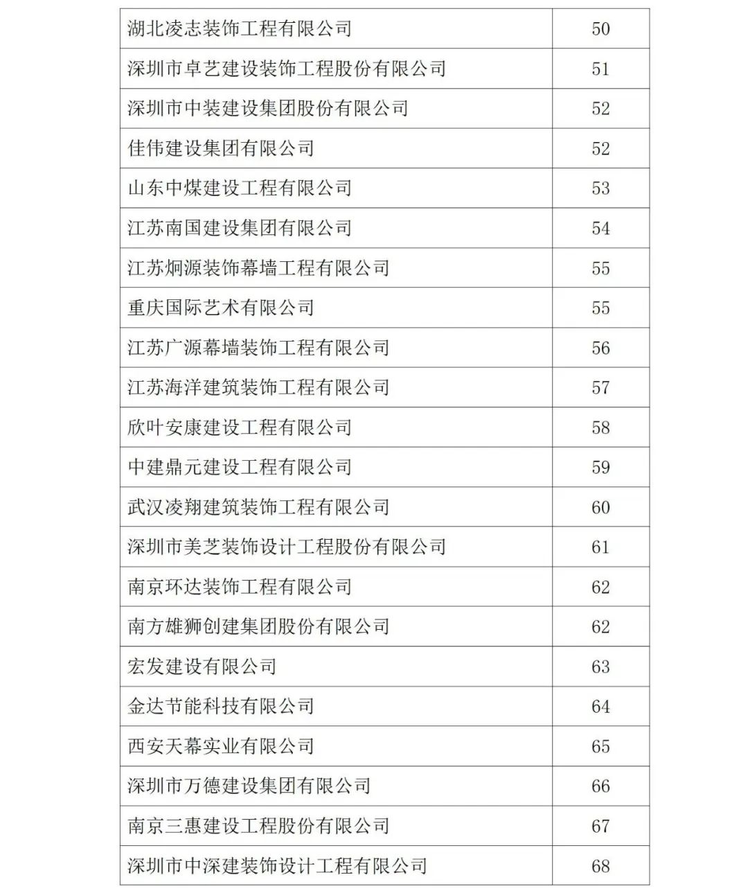 2021年度中國建筑裝飾協會行業綜合數據統計結果最終全名單公布